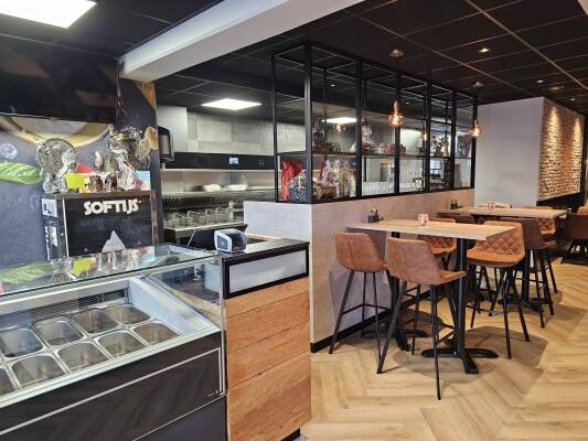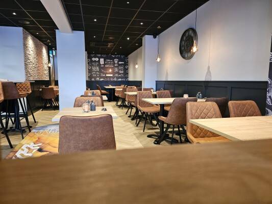 Het resultaat is een modern en fris restaurantinterieur, waarin gasten direct welkom worden geheten in een ruimtelijk opgezet restaurant. De keuken- en uitgiftezone zijn efficiënt en hygiënisch ingericht, zodat het personeel optimaal kan werken.